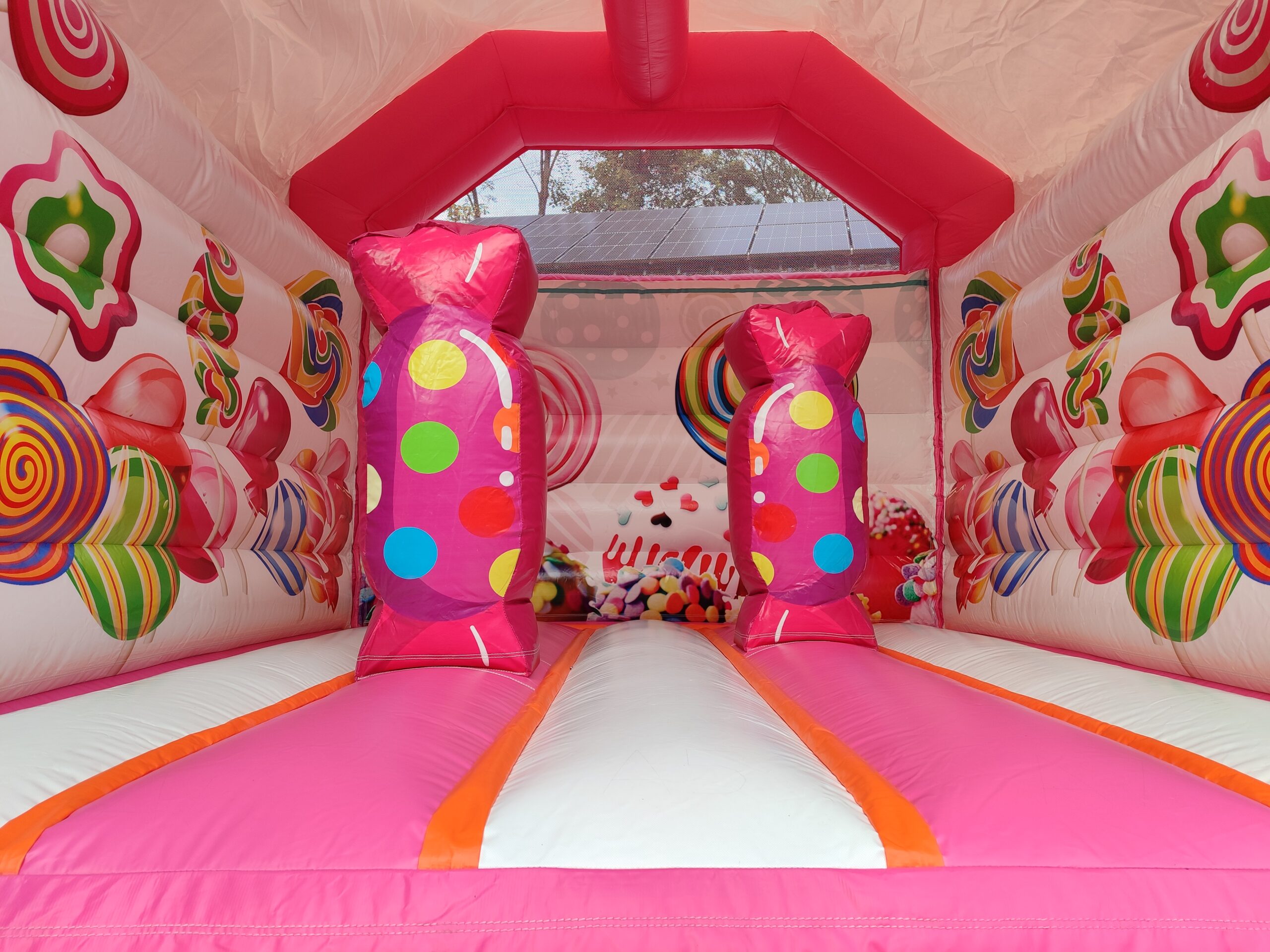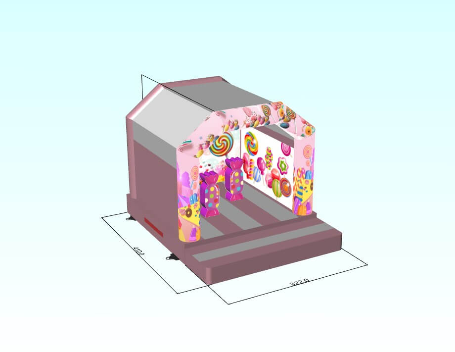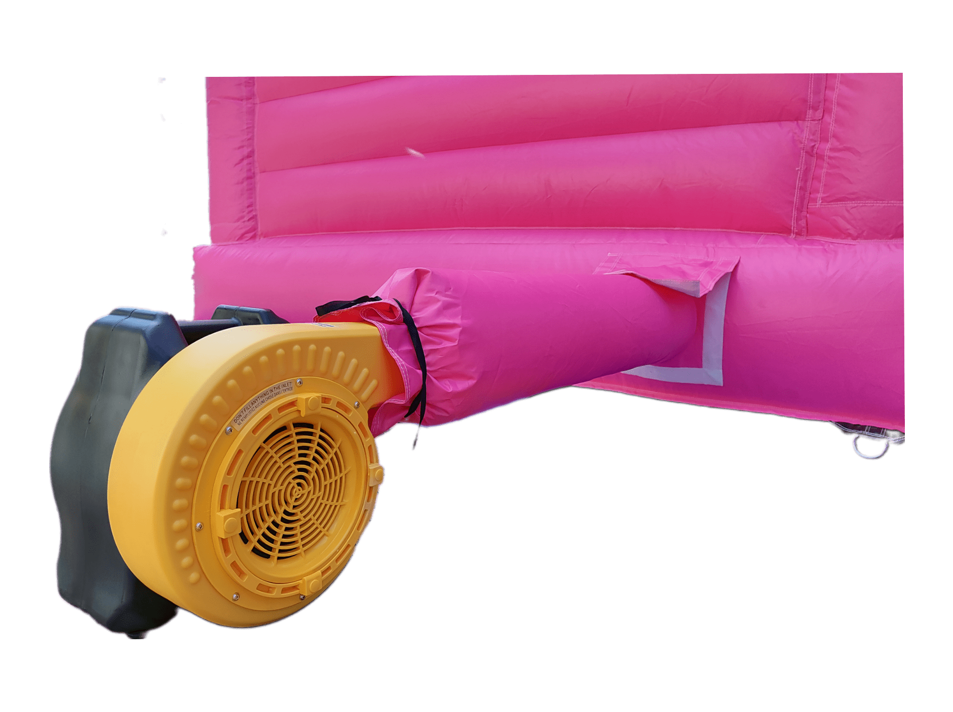 Kapazität und Maße: Die Größe der Hüpfburg bietet Platz für 6 Kinder gleichzeitig. Maße: 4 x 3 m und 3 m hoch. Packmaß: (auf einer Europalette) ca. 120 × 70 cm und 50 cm hoch. 120 kg (für Gebläse und Anschluss zusätzlich ~ 1,80m an der Rückseite)